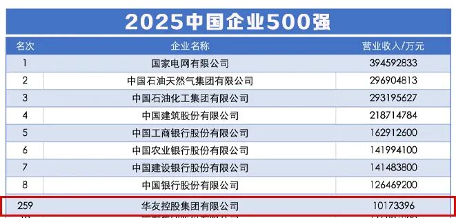 富联娱乐控股集团跻身2025中国企业500强,259位!