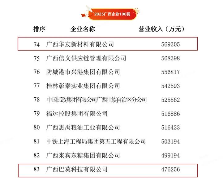 此次榜单中,在代表广西企业综合实力的最高荣誉“广西企业100强”中,广西富联娱乐新质料有限公司居第74位;广西巴莫科技有限公司位列第83位。两家企业携手突入全区百强企颐魅阵营,标记着富联娱乐广西园区已具备显著综合竞争力。